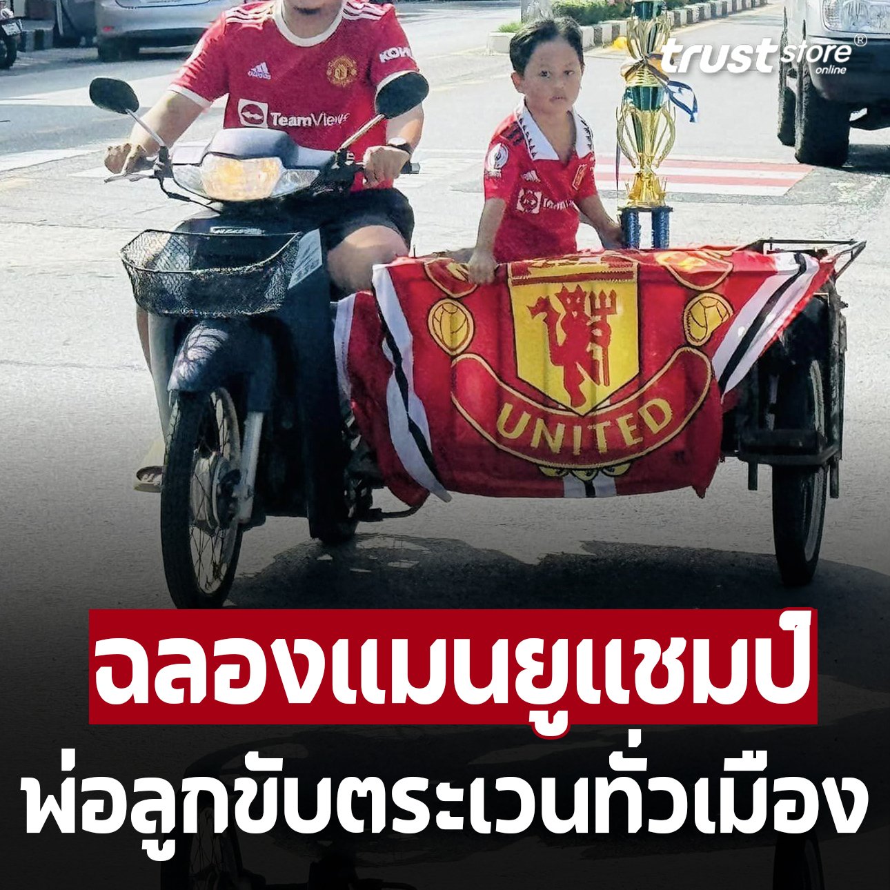 ไวรัลสุดเอ็นดู! พ่อลูกขับพ่วงข้างตระเวนทั่วเมืองภูเก็ต อวดถ้วย-ติดธง ฉลอง แมนยู คว้าแชมป์ เอฟเอ คัพ สมัยที่ 13 โซเชียลชื่นชมความน่ารัก