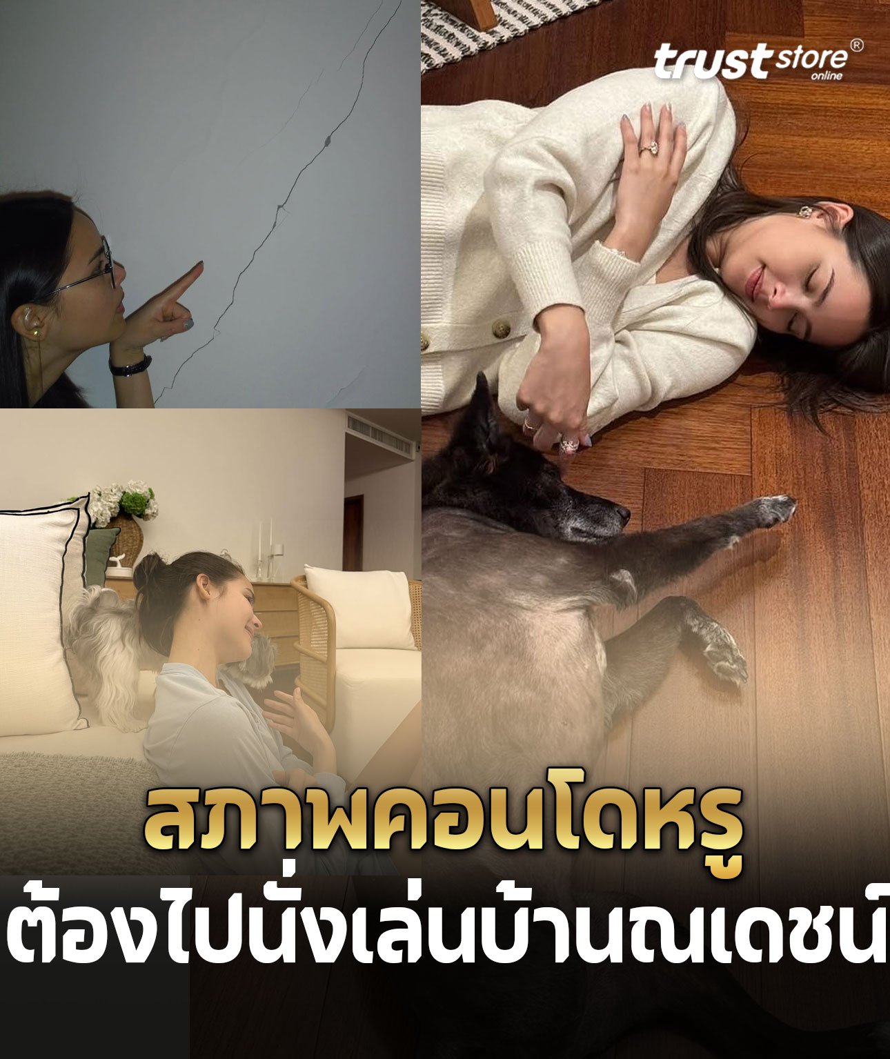 ล่าสุด ญาญ่า ได้เผยสภาพคอนโดหรูโดยกำแพงมีรอยร้าว