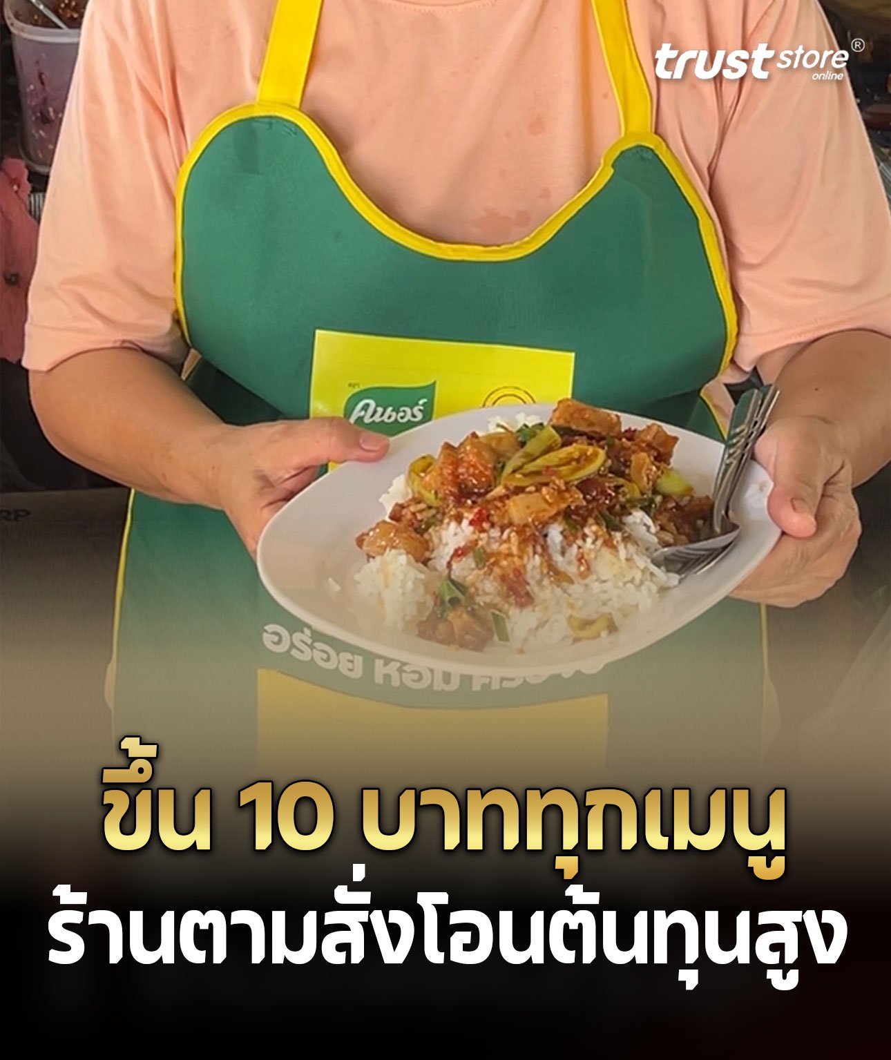“ราคาหมูสามชั้นล่าสุด 210-220 บาท ต่อ กก. ร้านจึงขอปรับขึ้นราคา 10 บาททุกเมนู และ ไม่ใช่ว่าแต่ราคาหมูที่ขึ้นราคาไข่ไก่ก็ขึ้นก่อนขายไข่ไก่ 1 ฟอง 6-7 บาท ตอนนี้ก็ต้องปรับเป็น 10 บาท อีกทั้งยังคงมีวัตถุดิบต่างๆก็พร้อมใจกันปรับขึ้นเช่นกัน ไม่ว่าจะเป็นซอส ,น้ำตาล ,น้ำมันหอย ,ซีอิ๊วขาว ขึ้นหมด ดังนั้นลูกค้าที่มาใช้บริการที่ร้าน ซึ่งส่วนใหญ่จะสั่งกะเพราหมูกรอบ ,คะน้าหมูกรอบ ,พริกแกงหมูกรอบ ,หมูกรอบคั่วพริกเกลือ ต่างก็เข้าใจในราคาที่ปรับขึ้นในภาวะต้นทุนที่สูงขึ้นในขณะนี้”