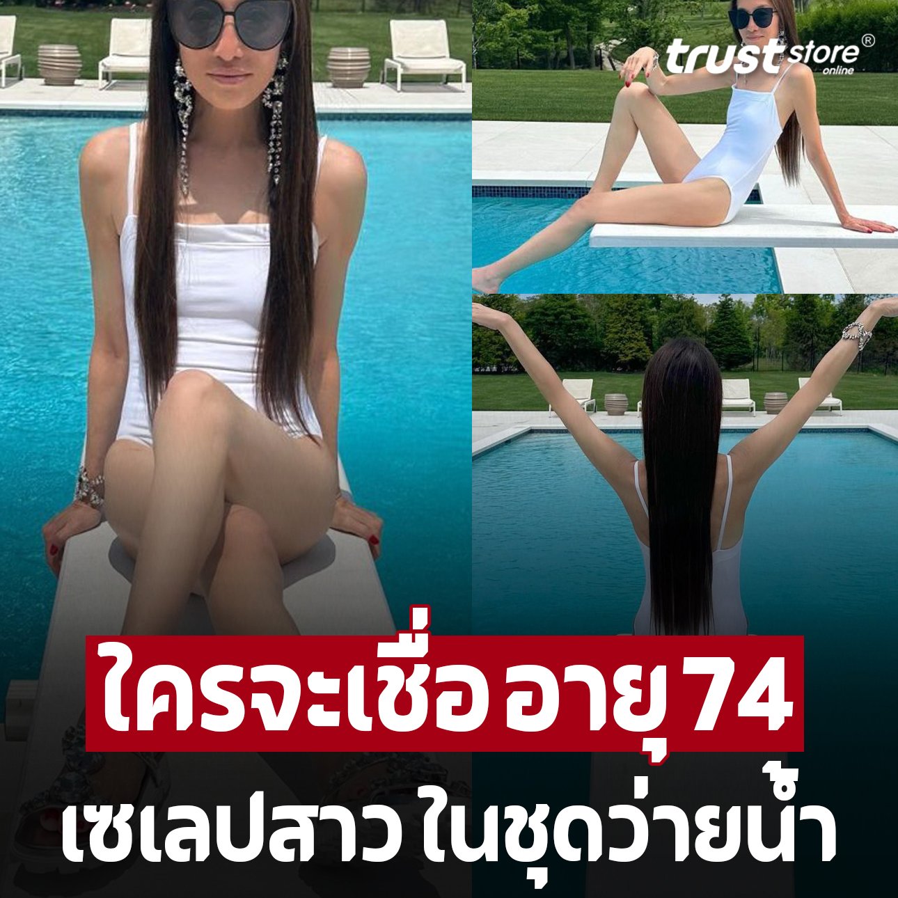 เซเลปสาว อวดหุ่น สวมชุดว่ายน้ำ นั่งริมสระ ใครจะเชื่อ อายุ 74 ปีแล้ว