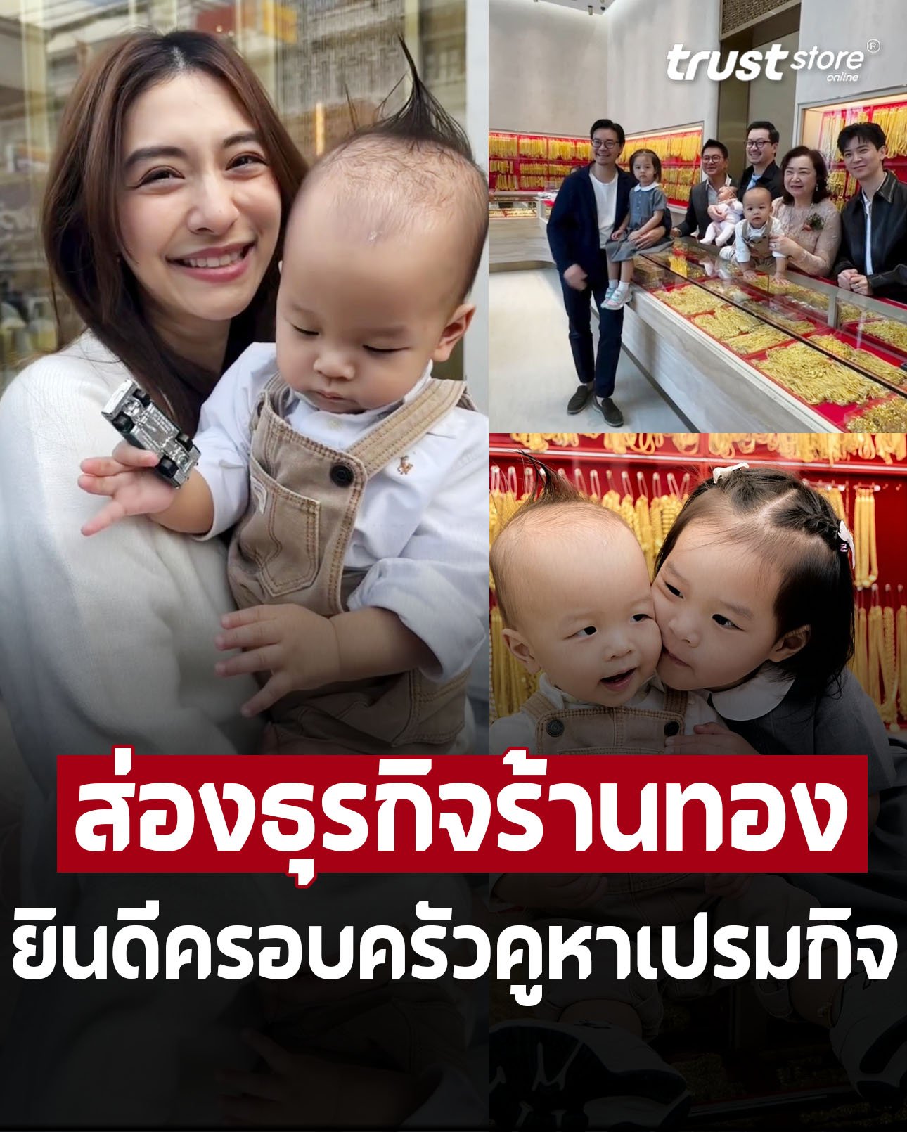 ซึ่งต่อมา ก็ได้โพสต์ภาพ น้องมาริน และ น้องมาคิน นั่งอยู่บนตู้โชว์ทอง เชิญชวนให้ลุงป้าน้าอามาซื้อทองในวันตรุษจีนที่ใกล้จะถึงนี้อีกด้วย