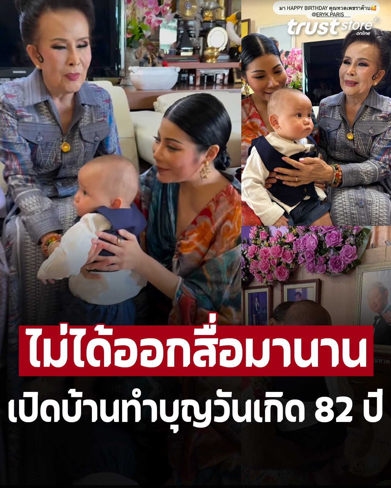 พร้อมกับภาพครอบครัวที่อบอุ่นมีลูกๆหลานๆ พากันมาอวยพรวันเกิด อย่าง แหวนแหวน ปวริศา ที่มากราบอวยพรคุณยายพร้อมกับลูกชาบตัวน้อยด้วย