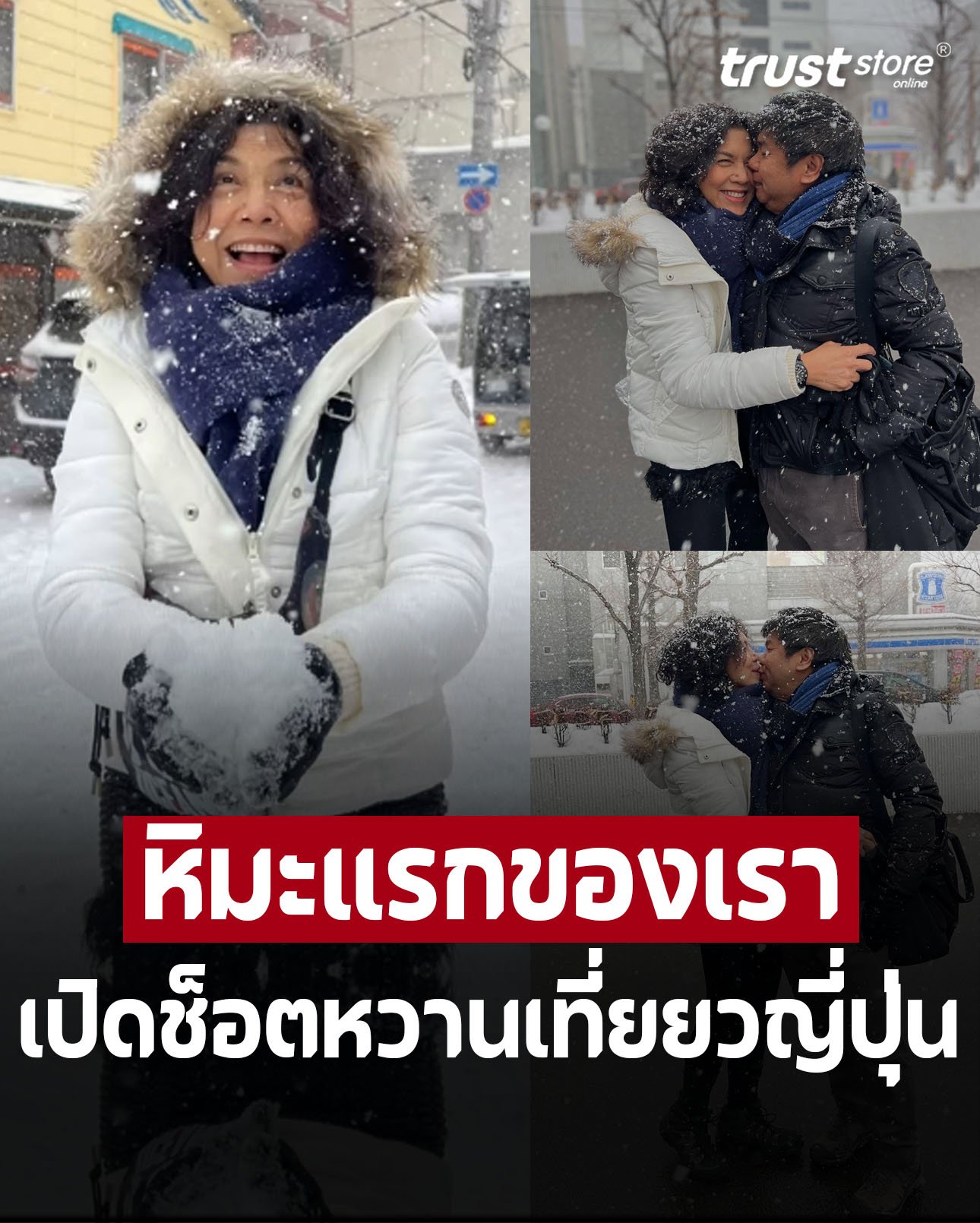 โดยได้เห็นโมเมนต์สุดหวานที่ ท็อป ดารณีนุช โพสต์ลงอินสตาแกรม กับภาพคู่ ไมโล ยืนอยู่ท่ามกลางหิมะ พร้อมกับแคปชั่นว่า “หิมะแรกของเรา มันก็จะ….น้ำแข็งใสหน่อยๆ”