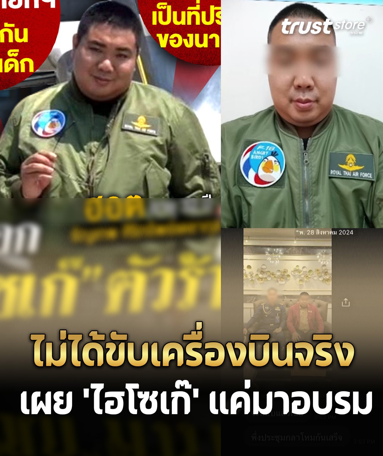 และยังเคยได้รับคำขอให้ทำการบินเครื่องบินรบ F5 คุ้มกันน่านฟ้า แต่ทางหญิงที่เคยคบหาด้วยบอกว่าน่าจะเป็นเพียงการขับเครื่องบินเล็ก เพราะเคยได้ยินไฮโซเก๊พูดถึงเรื่องชั่วโมงการบินนั้น