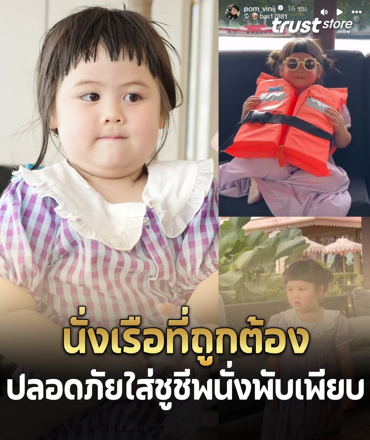 นั่งเรือที่ถูกต้อง “น้องเกล” ปลอดภัยใส่ชูชีพแถมนั่งพับเพียบ พี่ๆ เห็นแล้วยิ้มเลย