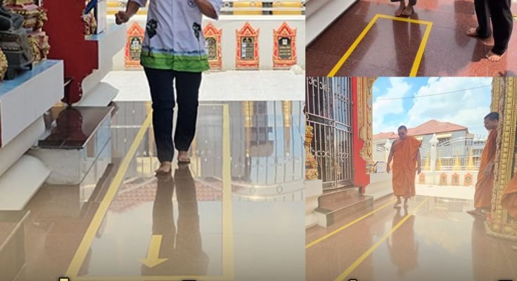 ชาวบ้านเดินกระเบื้องวัด 7 แผ่นร้อนจนเดินไม่ได้ ชาวเน็ตเป็นห่วง