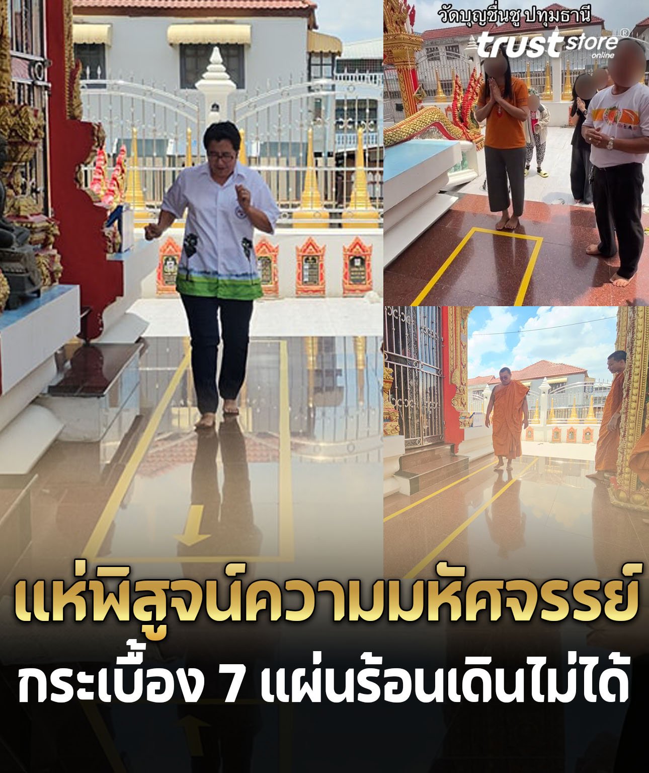 วันที่ 15 พ.ค.68 สมาชิก TikTok @natampvkktk โพสต์คลิปหลังมีคนเข้าไปพิสูจน์กระเบื้อง 7 แผ่นร้อนจนเดินไม่ได้ ที่วัดบุญชื่นชู จ.ปทุมธาน