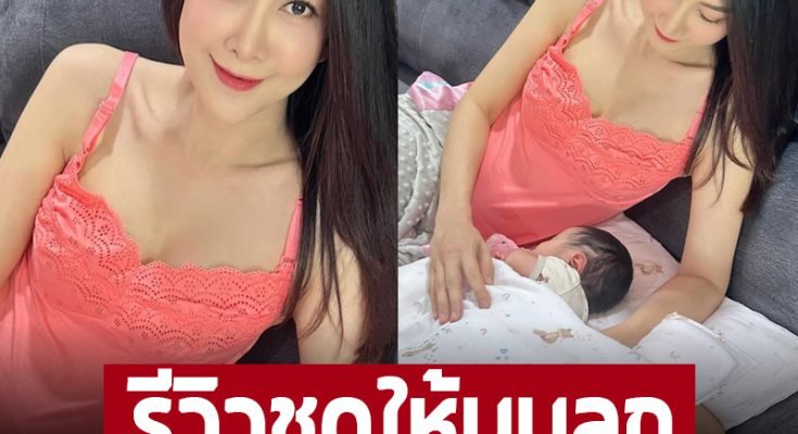 ด้วยการโพสต์ภาพถ่ายอวดลุคสวยละมุนในวันพักผ่อน พร้อมแคปชั่นรีวิวชุดให้นมสีชมพูหวานขับผิว โดยมี น้องพราวตะวัน นอนหลับปุ๋ยเคียงข้าง