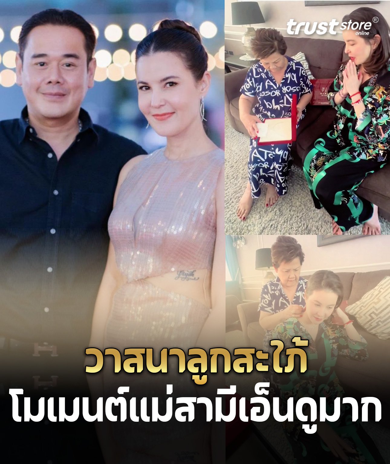 ในคลิป แม่ตุ้ย ได้สวมให้ลูกสะใภ้พร้อมกับบอกว่า “ใส่นะลูกนะ น่ารักมาก” เป็นประโยคที่น่ารักมากสัมผัสได้ถึงความรักอย่างเต็มหัวใจ