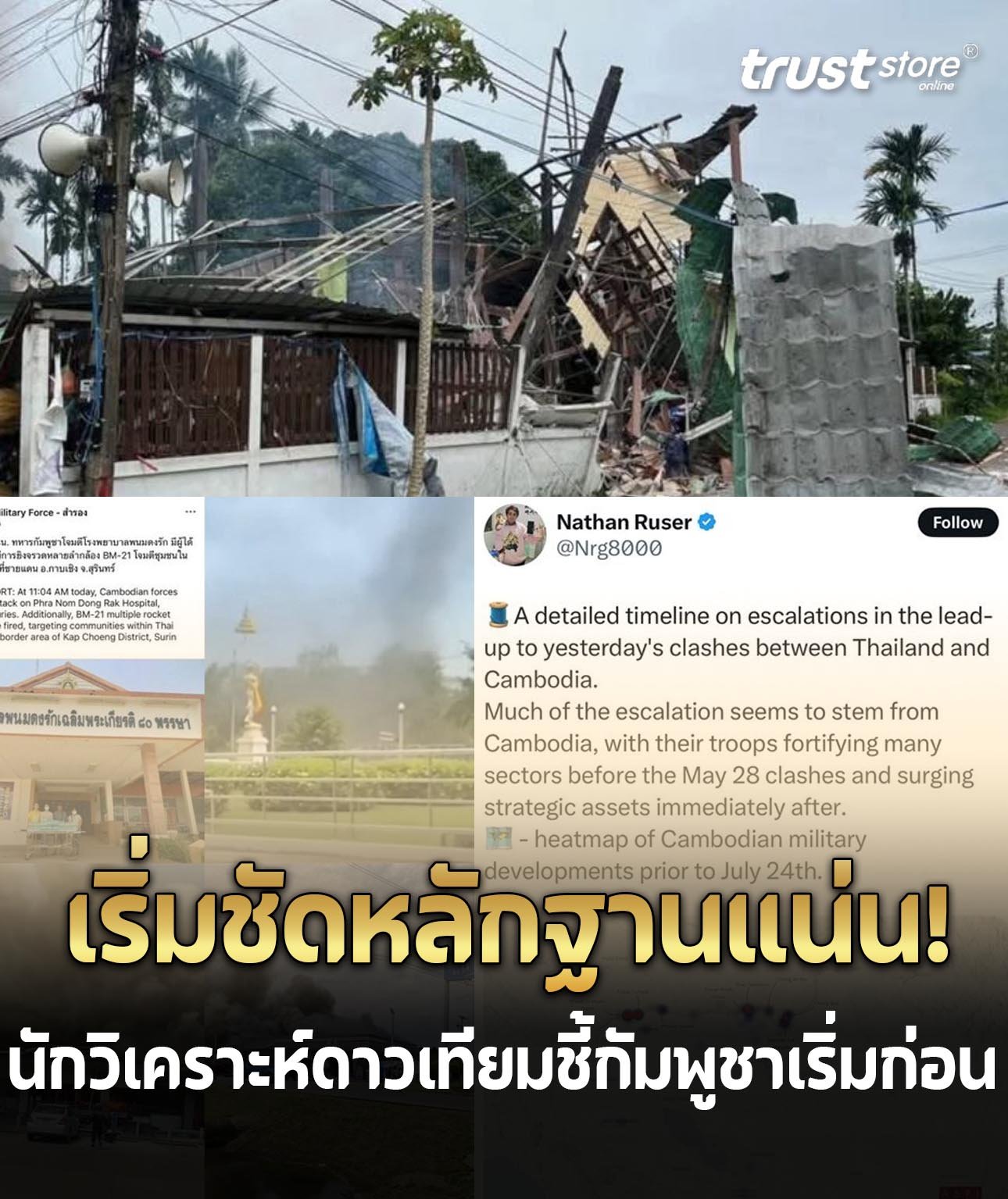 ได้ออกมาโพสต์ข้อความ อ้างอิงข้อมูลจากนักวิเคราะห์ดาวเทียมชาวออสเตรเลียที่พบหลักฐานว่าจุดเริ่มต้นเกิดจากฝั่งเขมรก่อน โดยได้ระบุข้อความว่า