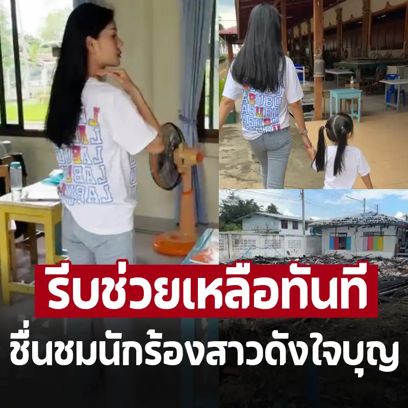 ชื่นชมนักร้องสาวดังใจบุญ ลงพื้นที่ช่วยเหลือโรงเรียนไฟไหม้