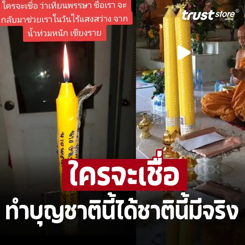 แต่ทางวัดได้มอบเทียนพรรษาให้ชาวบ้าน แต่ที่น่าประหลาดใจที่เทียนนั้นมีชื่อและนามสกุลของเรา ทำบุญชาตินี้ ได้รับในชาตินี้มีอยู่จริง”