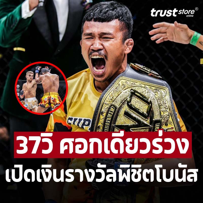 ส่งให้จอมเตะขวัญใจชาวไทย ปิดเกมชนะน็อกไปด้วยเวลาเพียง 49 วินาทีของยกแรก ขึ้นแท่นเป็นแชมป์โลก ONE 2 รุ่น 2 กติกา ได้อย่างยิ่งใหญ่ พร้อมพิชิตโบนัส 50,000 ดอลลาร์สหรัฐ (กว่า 1.6 ล้านบาท) เข้ากระเป๋าแบบไม่รวมค่าตัวเป็นของแถมสุดพิเศษ