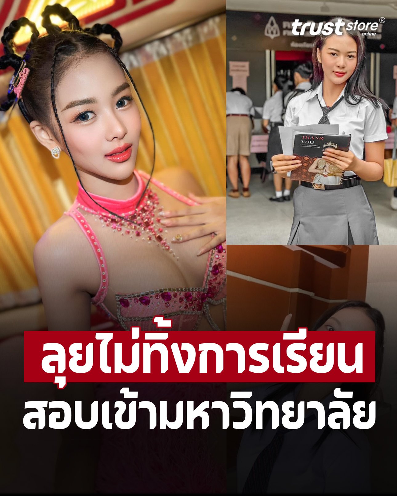 ขยันทำงานสุดๆ แต่แม้จะทำงานหนักขนาดไหน ก็ไม่ทิ้งการเรียน ล่าสุดเธอสวมชุดนักเรียน ไปสมัครเรียนต่อที่มหาวิทยาลัยขอนแก่น คณะศิลปกรรมศาสตร์